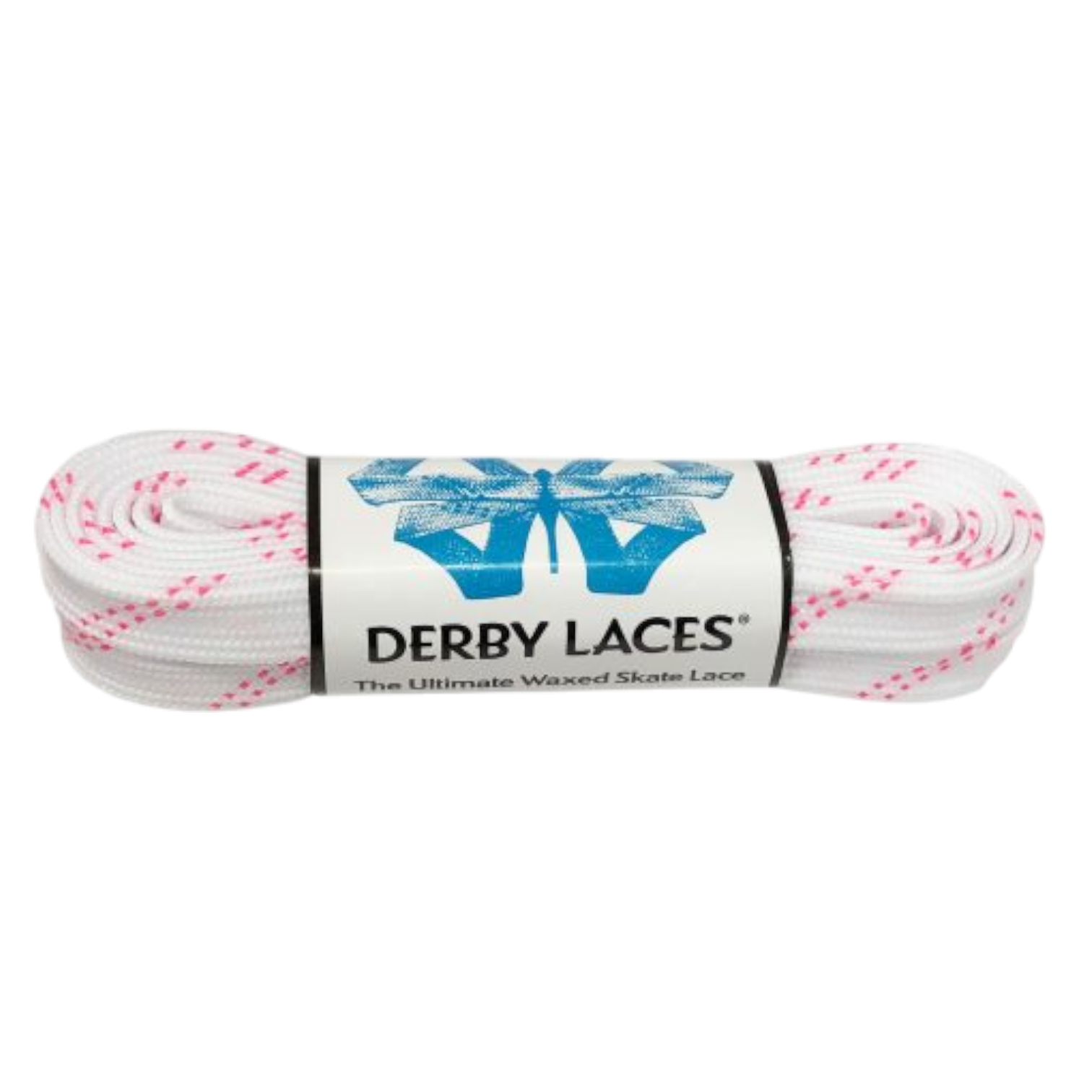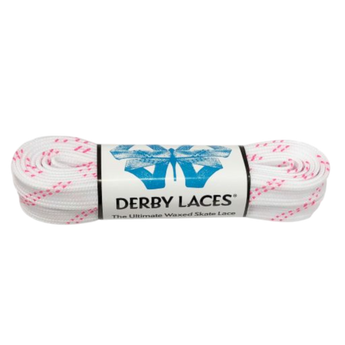 Derby Laces - White with Pink Tracer - Waxed 10mm Laces (Sold In Pairs)