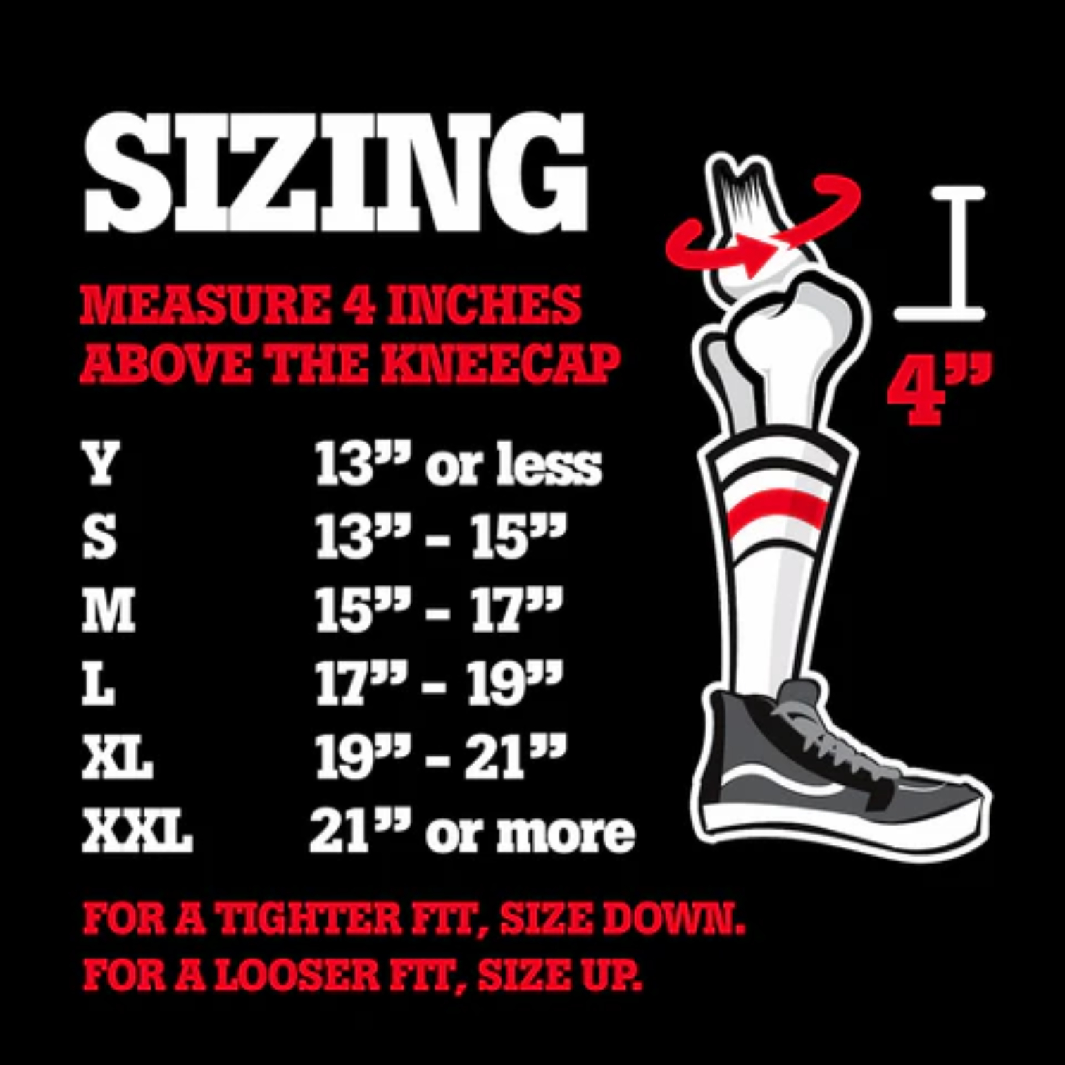 Measure 4 inches above the top of kneecap... From there measure the circumference of your leg and use the sizing chart below.