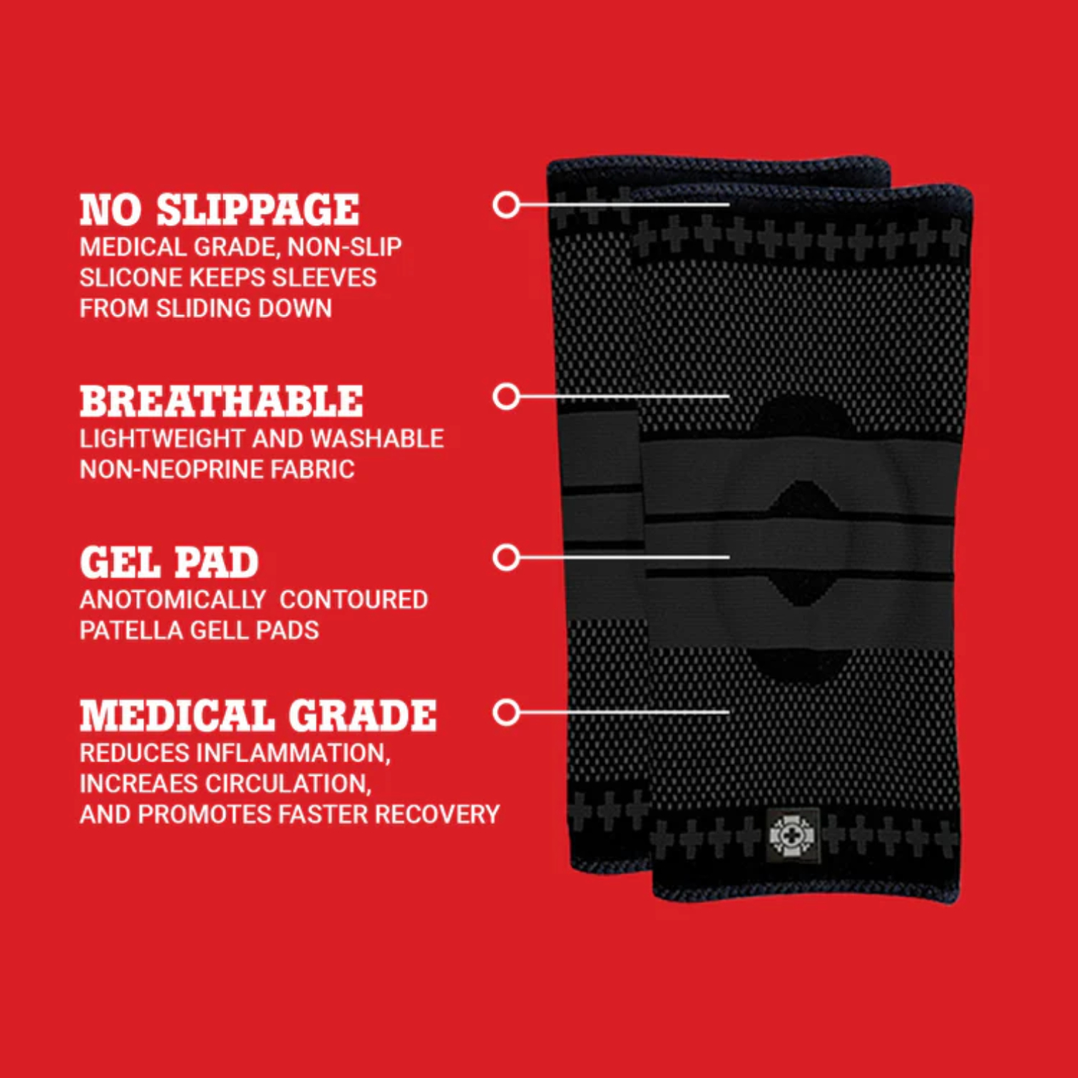 COMPRESSION BENEFITS - Alleviates the effects of high impact activities such as running, basketball and skateboarding. Proven to reduce inflammation and provide pain relief from minor injuries or post surgery aches and pains. Best of all our knitted compression sleeves STAY UP and WON'T SLIDE DOWN!!!