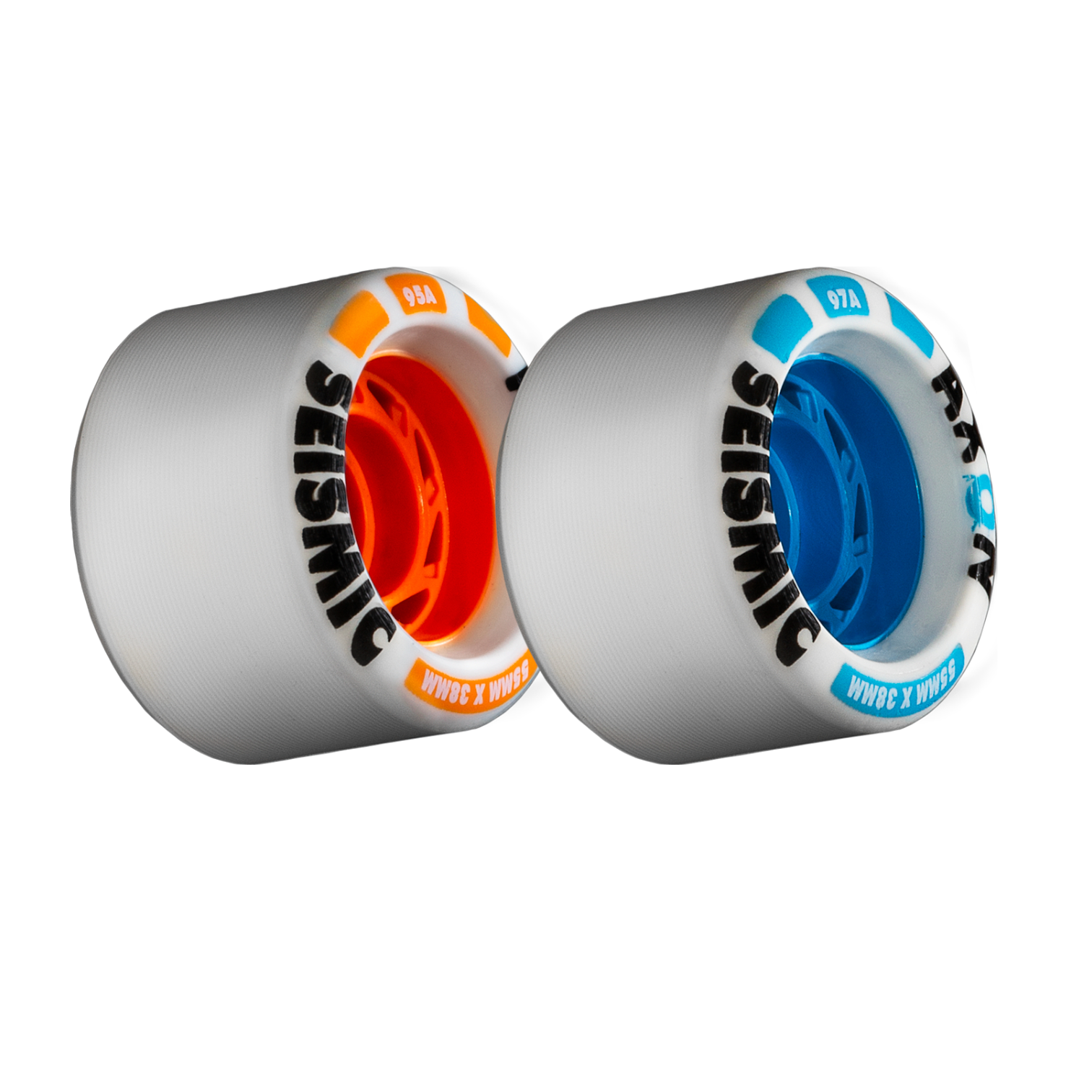 The Axon is Seismic’s answer to the question: “How would you engineer a superior flatland freestyle wheel from bearing seat to running surface – with a hub that offers the sturdiness of a traditional all-urethane wheel and the lightness and precise bearing placement of a cored wheel?”