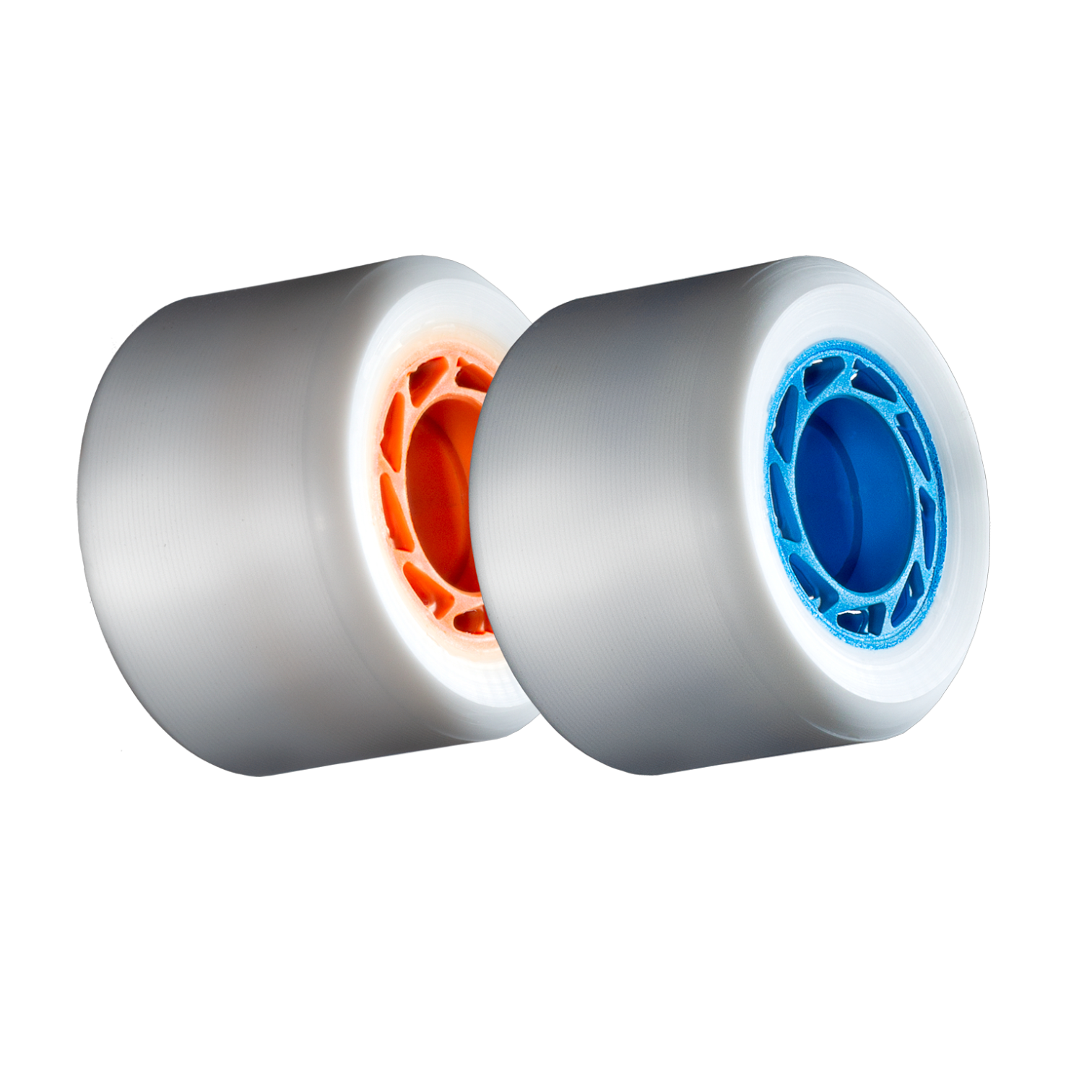 We started with an advanced weight-saving vented hub – featuring extra-tough bearing supports and a unique extension to buttress the outside lip against high stresses (e.g., during Coconut wheelies and rail transitions). Then we added fast, top-class urethane carefully formulated for an optimal balance of grip and slip on typical surfaces.