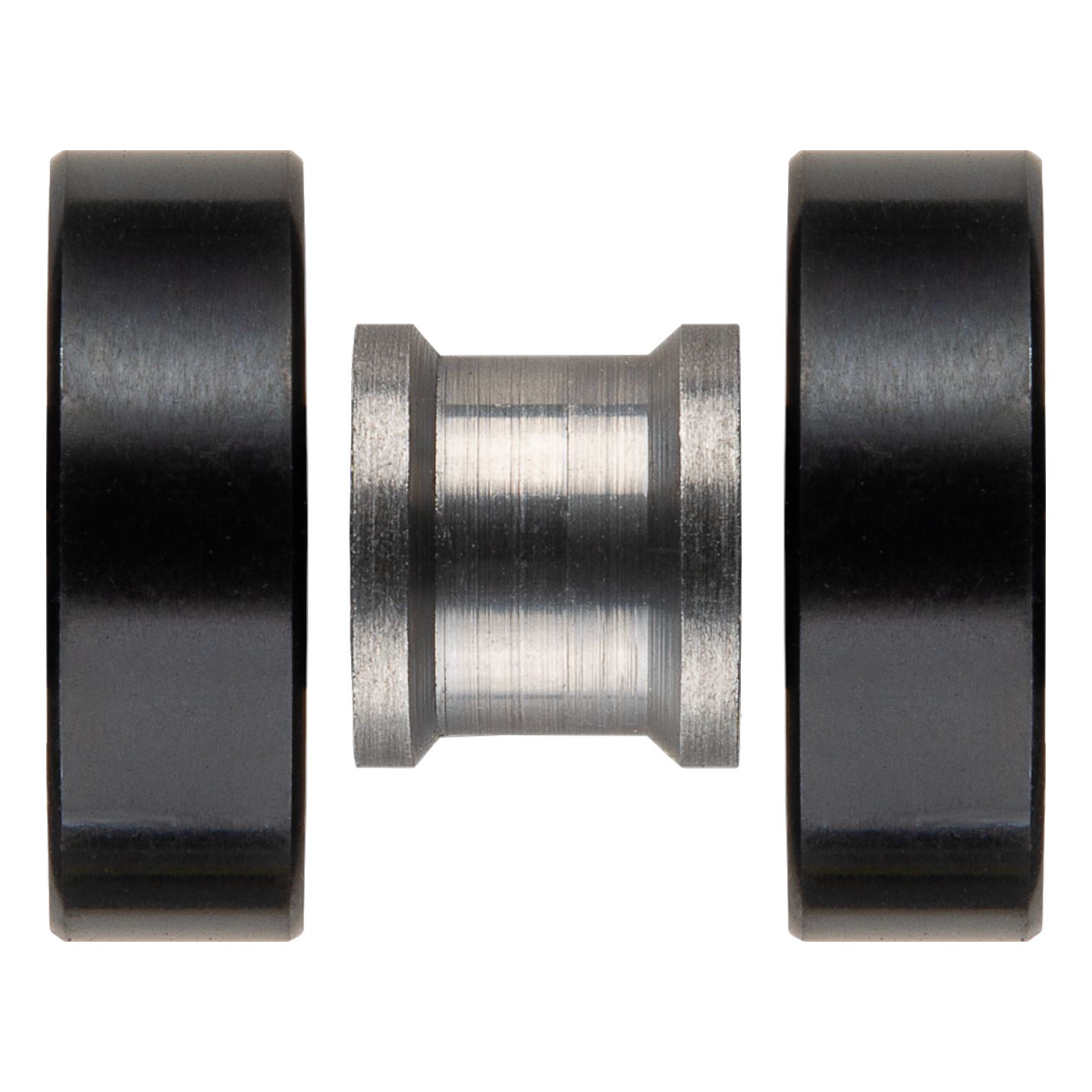 Next-gen Classic spacing / alignment system – Fullspin’s unique profiled spacers – precision-machined from premium bearing steel with smarter, stricter dimensional specs – have broad flanged ends that square up against matching extra-wide inner ring surfaces with up to 67% more contact area, powering unprecedented Classic alignment precision and stability. System levels and steadies all working components of seated bearings far better than any other Classic design, to unleash truly exceptional paired performance. Synergizes with all advanced features in individual bearings to maintain exceptionally consistent wheel contact and grip; support extremely predictable slide performance; and noticeably extend both wheel and bearing life.