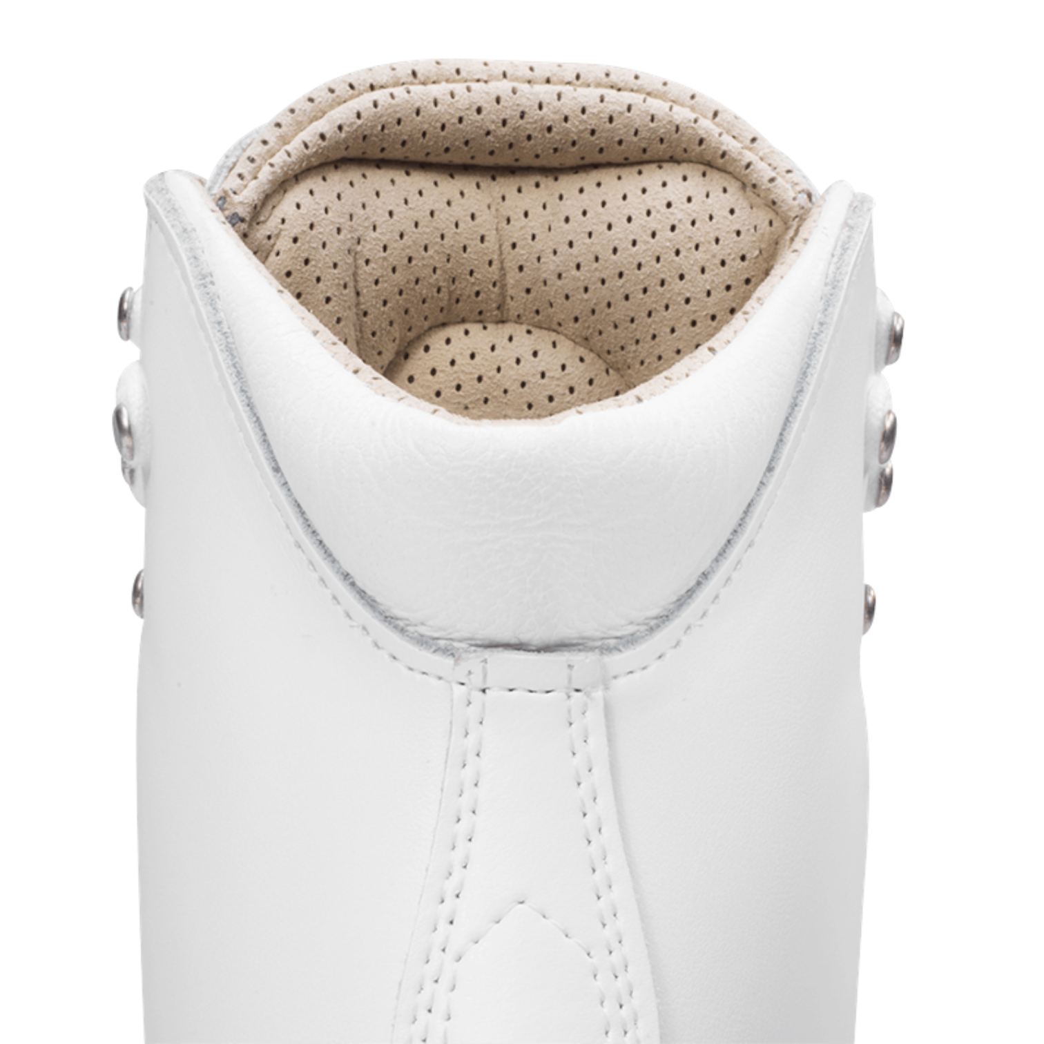 Dance-cut backstay collar encourages full forward and backward flex for deep edges, demanding footwork and toe pointing. The special boot profile allows the ankle joint a superior range of motion while keeping the foot secure in its heel pocket. The cushioned backstay collar supports the Achilles tendon area to guarantee ankle comfort during intricate footwork and toe pointing.