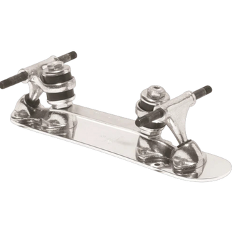 The Century NTS (no toe stop) plate is polished aluminum plate designed to be strong and agile, for skaters who do not want or use a from toe stop. It comes with our Sure Grip aluminum standard 10-degree double-action trucks, hardened steel 8mm axles, Sure Grip black urethane cushions, and hex headed Grade 8 kingpins. Made in the USA.