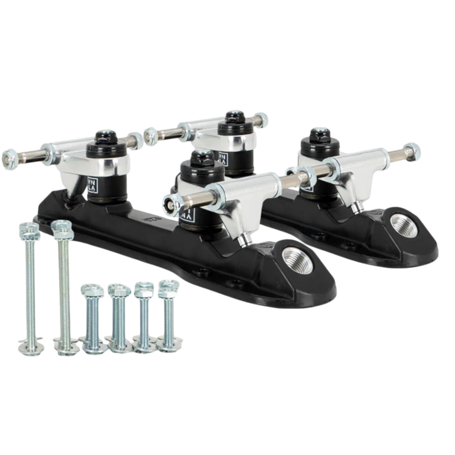 Plate includes hardware, trucks, cushions, axle nuts, axle washers, and mounting hardware.