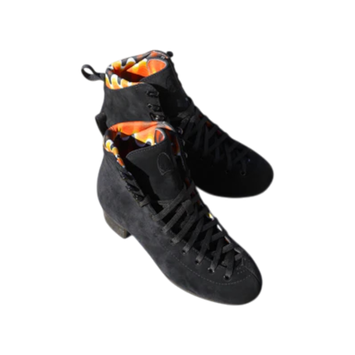 The first color in the Chuffed PRO collection is our black suede DE LA CASA boot. This is the house design of Chuffed full-time staffers Sugu Valbuena Sanchez and Samantha Trayhurn. 2 years in the making, the DE LA CASA skate brings the features that our staff value most in a boot, combined into one sweet package. The retro lining was designed by Sugu!