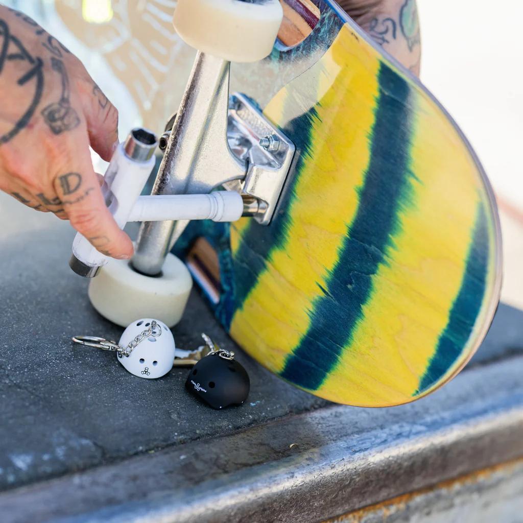 Keep your favorite brand close with the Triple Eight helmet keychain.