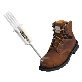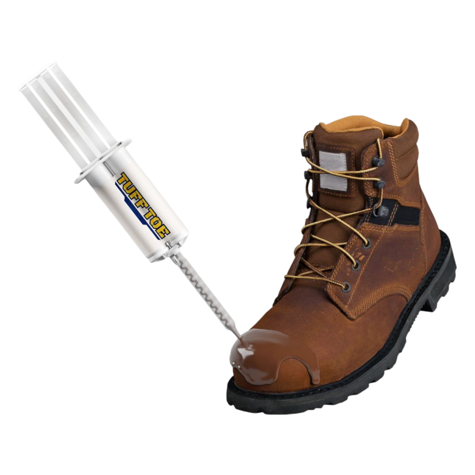 TUFF TOE Work Boot Toe Protection & Repair is a polyurethane adhesive with abrasion, chemical, and water-resistant abilities. It has been specially designed to provide long-term protection for your work boots, hiking boots, shoes and any other footwear that needs protecting.
