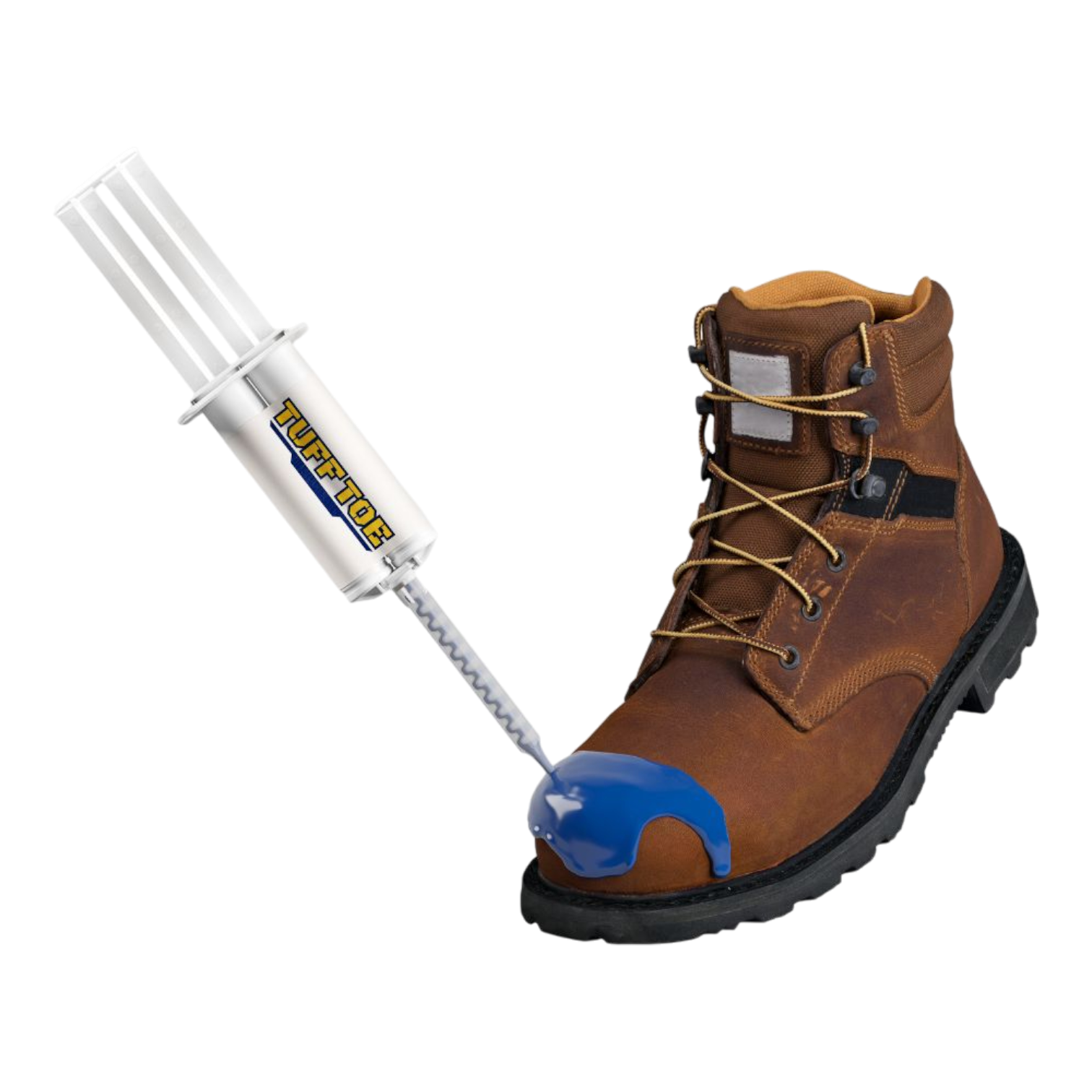 TUFF TOE Work Boot Toe Protection & Repair is a polyurethane adhesive with abrasion, chemical, and water-resistant abilities. It has been specially designed to provide long-term protection for your work boots, hiking boots, shoes and any other footwear that needs protecting.