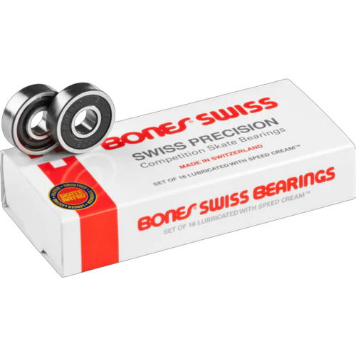 Legendary Original Bones® Swiss Bearings are the optimum combination of Bones Skate Rated™ design and Swiss precision manufacturing creating the standard by which all other bearings are measured. For more than 24 years preferred by the world's top professional skaters. Proven, professional competition-grade speed and durability make Bones Swiss normally last several times as long as ordinary ABEC rated bearings. Features Single, removable, non-contact rubber shield allows easy cleaning and low friction. High speed nylon ball retainer provides added strength and speed. Pre-lubricated with Speed Cream& racing lubricant Skate Rated; clearances, tolerances, materials and lubricant provide the best performance and durability possible. Best selling high end skate bearing in the U.S.A
