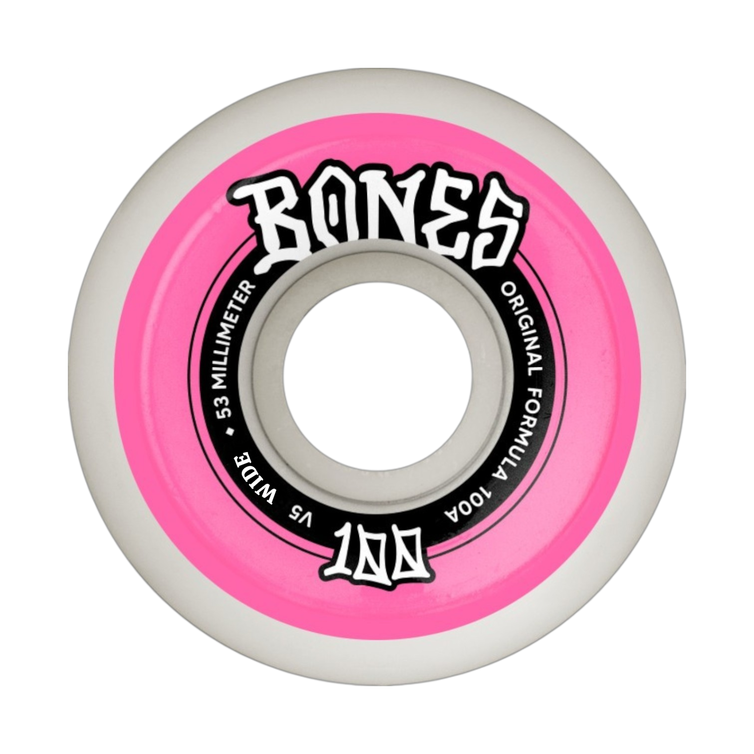 Bones - 100A White OG Wide 53mm Skateboard Wheels (4 Pack)