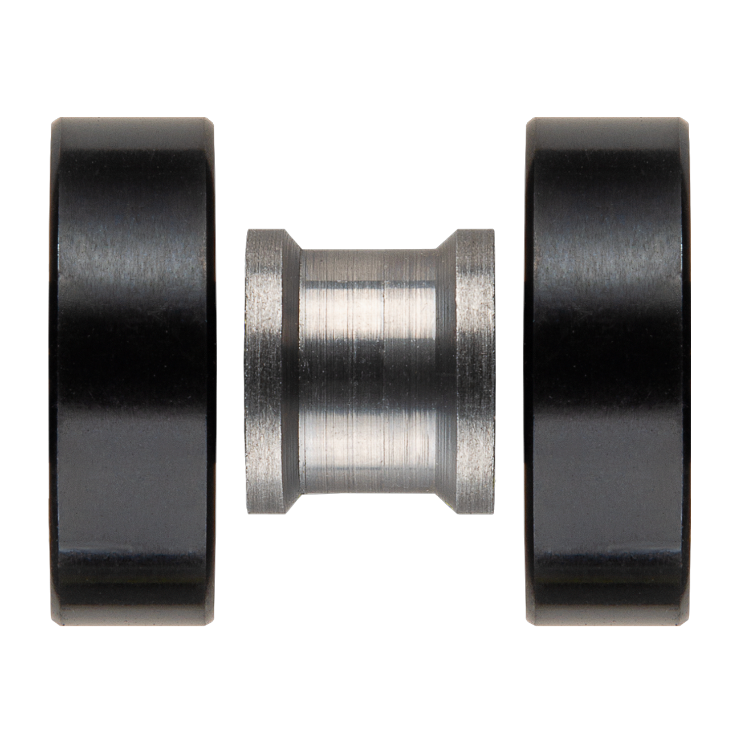 Next-gen Classic spacing / alignment system – Fullspin’s unique profiled spacers – precision-machined from premium bearing steel with smarter, stricter dimensional specs – have broad flanged ends that square up against matching extra-wide inner ring surfaces with up to 67% more contact area, powering unprecedented Classic alignment precision and stability. System levels and steadies all working components of seated bearings far better than any other Classic design, to unleash truly exceptional paired performance. Synergizes with all advanced features in individual bearings to maintain exceptionally consistent wheel contact and grip; support extremely predictable slide performance; and noticeably extend both wheel and bearing life.