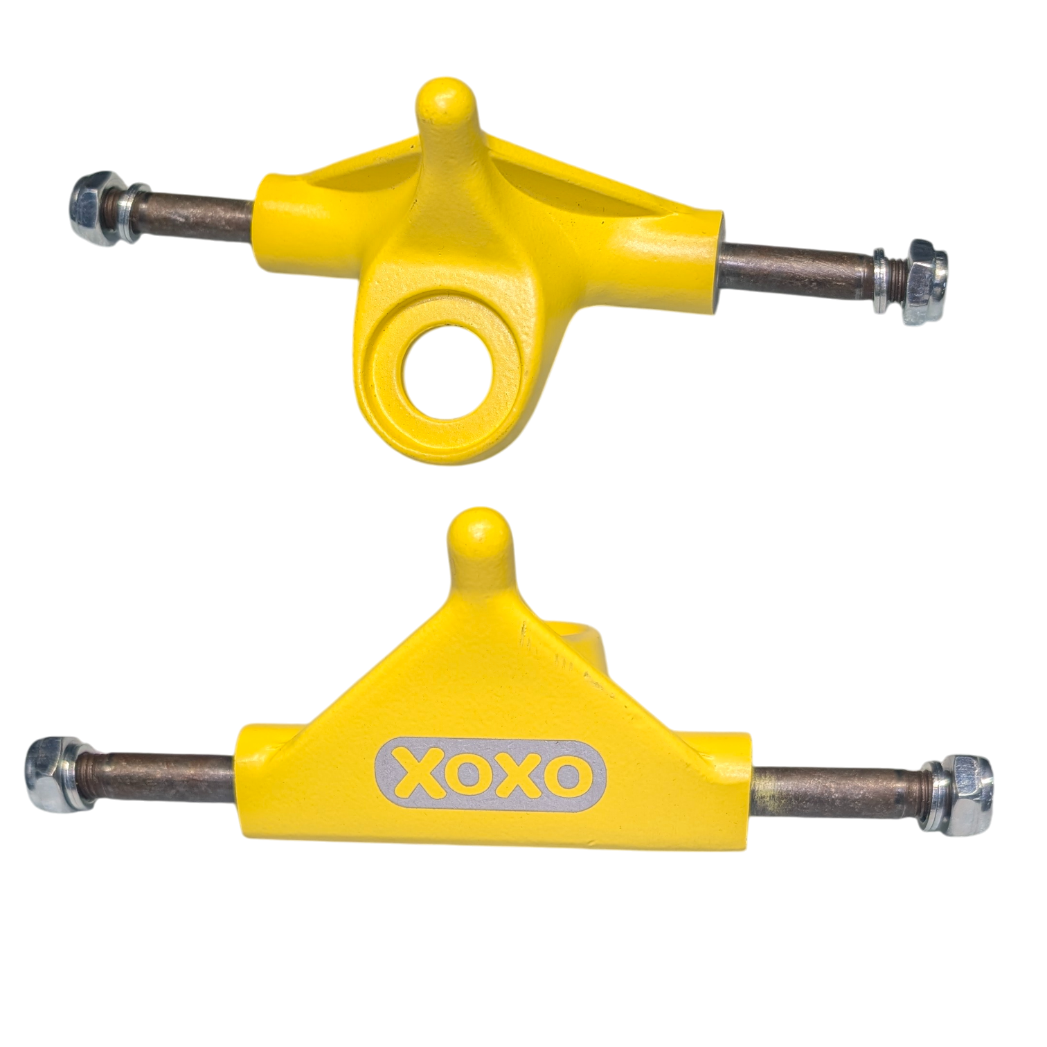 The XOXO is a retro fit truck kit that will fit some but not all 10 to 12 degree roller skate plates. Because of the endless slider block, plate, cushion combinations it will be up to the installer to test fit the trucks before skating.