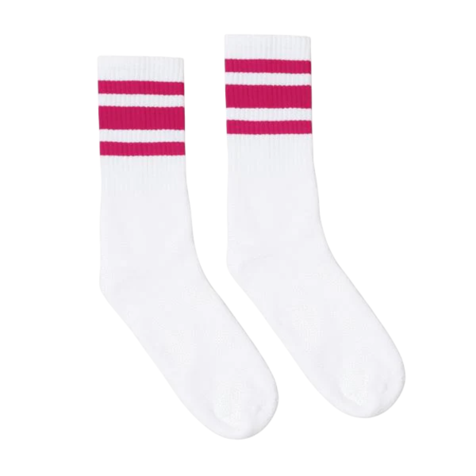 Experience eye-catching style and unparalleled comfort with SOCCO's Fuchsia Striped Socks. The vivid fuchsia against pristine white will make your feet the talk of the town. Made in the USA, our socks signify a revival of 70's and 80's athletic aesthetics with added modern technology for everyday excellence.