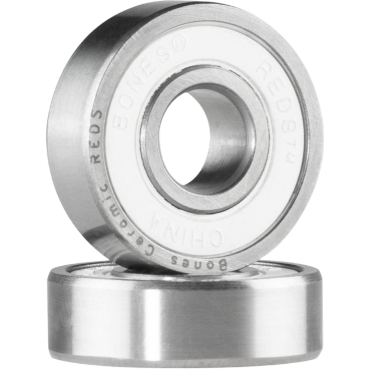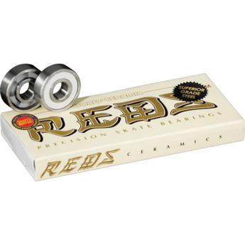 Bones Ceramic REDS® are lighter and provide faster acceleration because the balls weigh much less. They create less friction and are thus faster than Super REDS, with or without lubricant! When you get dirt into your Ceramic REDS, the ceramic balls will help to re-polish the steel races flat again, providing a self-healing benefit because ceramic balls are so much harder than steel. Finally, ceramic balls will not rust, further lengthening their life. Ceramic REDS use a bone colored shield with laser-engraved outer races for identification.