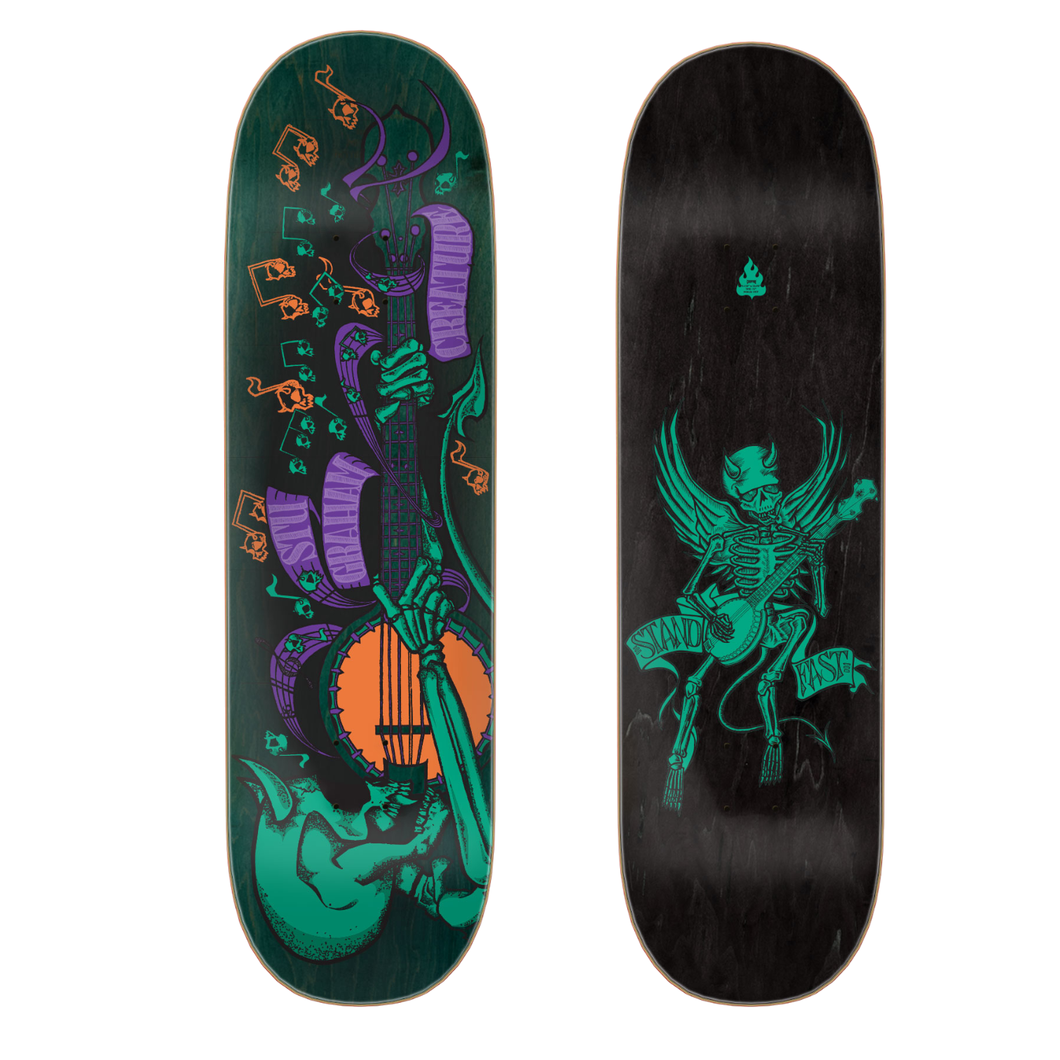 Creature Graham Stand Fast II It lives again! Stu Graham’s 9.125 x 32.98 ‘Stand Fast ll’ re-issue Pro 1-Off is back again for another tune. At the time of this gem’s original release, there was only one dude you could count on for a popsicle shape over 9” wide. Stu brought it to the table before all.. the Ogre don’t play! Artwork by Collin McInnes.