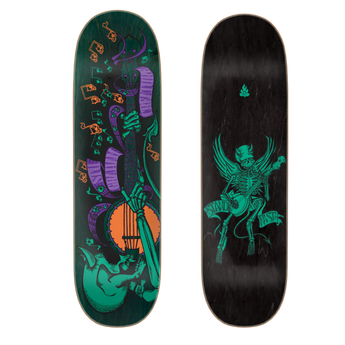 7 ply North American Maple pressed individually using epoxy - making a strong, responsive deck with long lasting pop and consistent concave and kick.