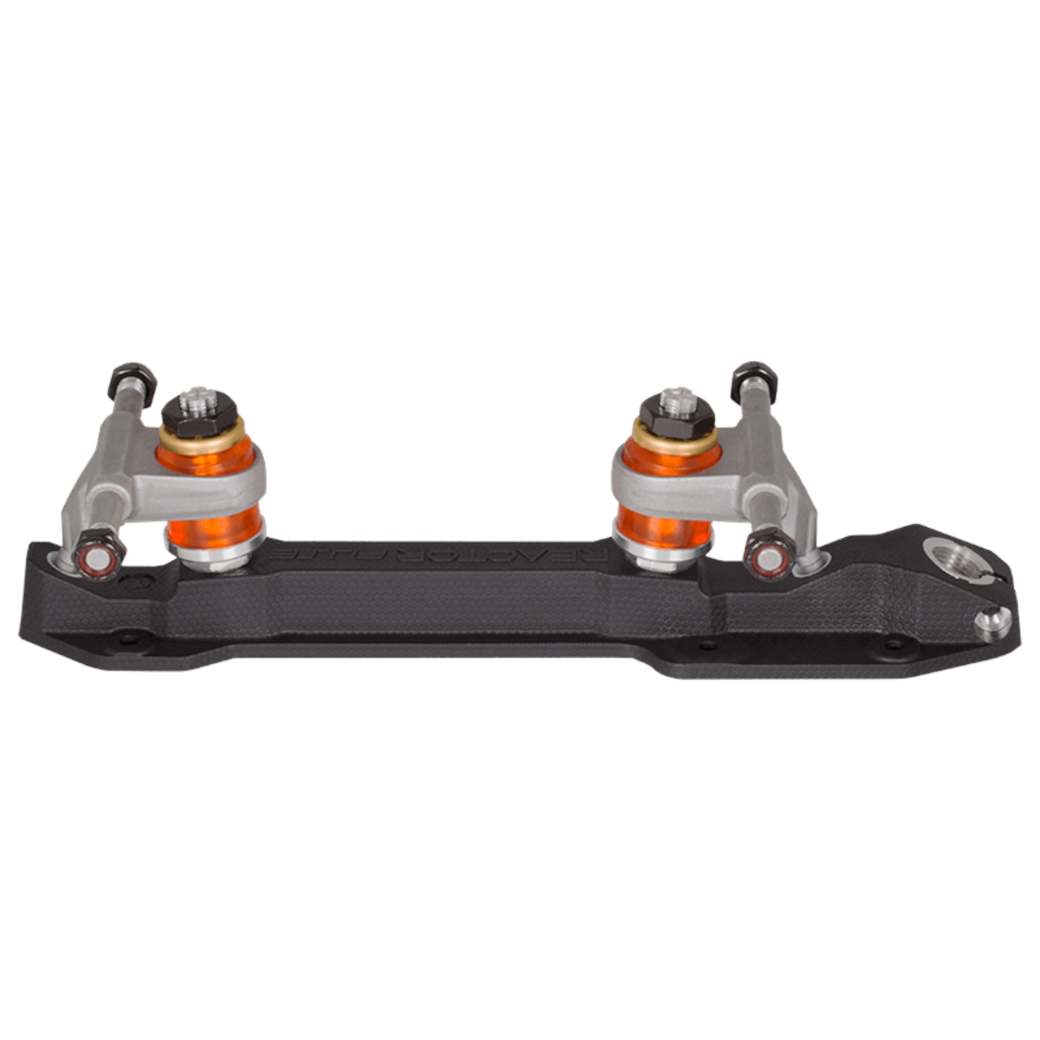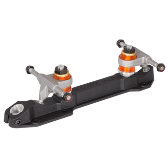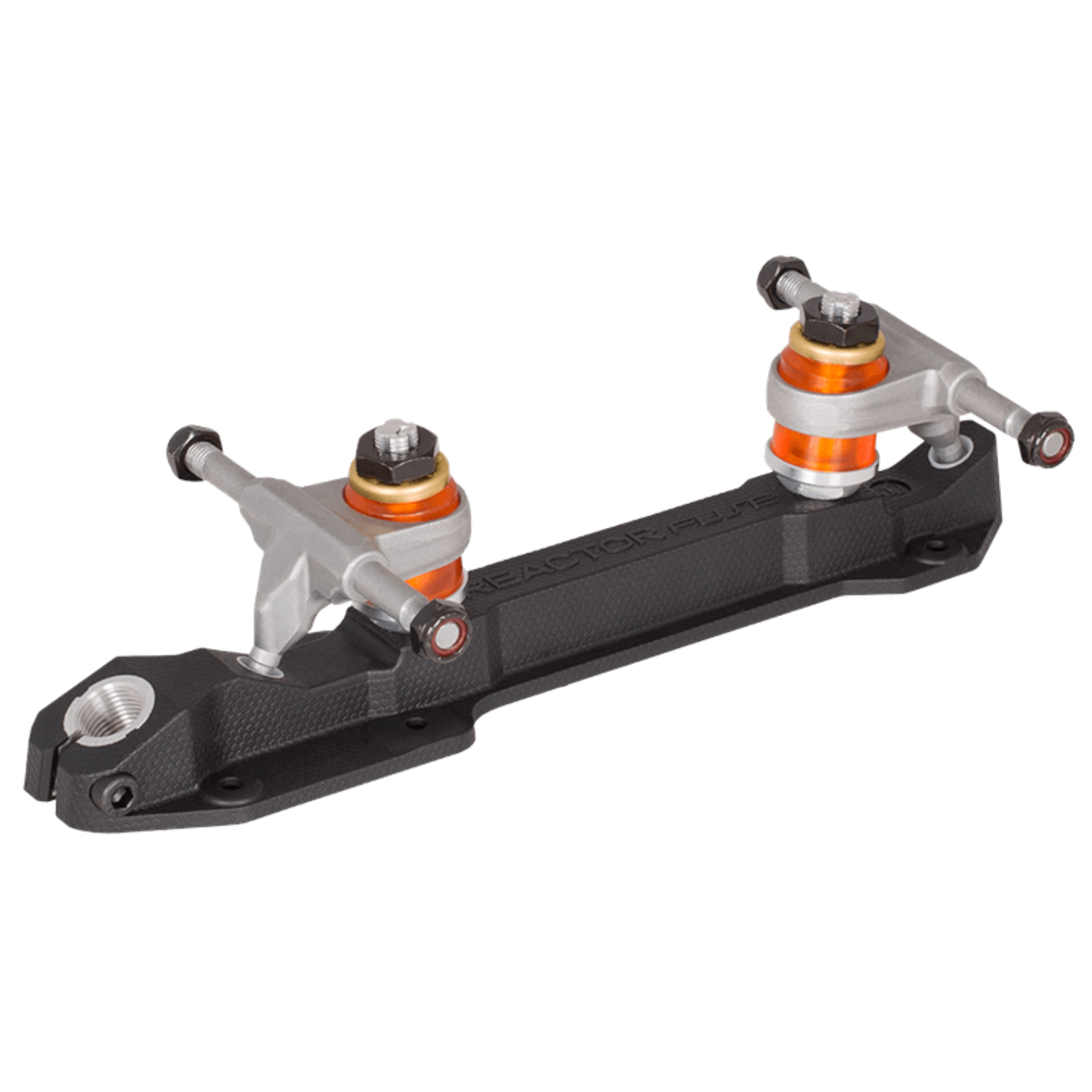 The Reactor Fuse, offers exceptional performance at a great value. The lightweight nylon Fuse plate is reinforced with fiberglass to offer incredible strength and durability. You won't have to worry about your toe stops falling out, as the Fuse comes with an integrated aluminum toe stop insert that securely locks toe stops in place with a 5mm Allen bolt. The kingpins are set at 10 degrees for superior power, stability, and stopping control. The Fuse features our precise click-action kingpin adjustment nuts to take the guesswork out of cushion adjustment. The Reactor Fuse is perfect for beginner and intermediate skates, or veterans looking for a lightweight and durable plate offering exceptional value.