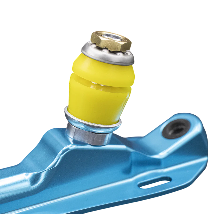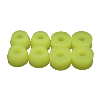 APS is our most lively feeling urethane with high rebound and lean. It will turn 10-15% more than the same durometer of other brands. It has the widest range of durometer from 97.5a (super hard) down to 60a (really soft), and is a great starting place if you're new to changing your bushings.