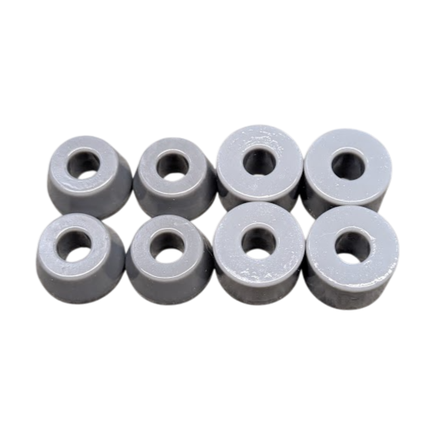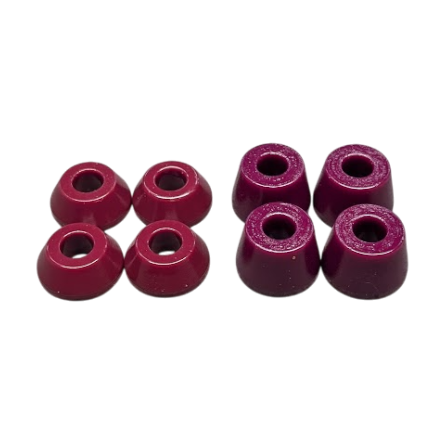 Durometer is the scientific word for hardness in elastomers. It’s measured from 0 to 100, with 100 being the hardest.* We consider 90-97.5a to be hard, 80-88a to be Medium hard, 70-78a to be medium soft, and 60-68a to be soft. Our softest bushings can be “squished” by hand and feel a bit like a gummy bear (not as tasty though - do not try to eat our bushings).